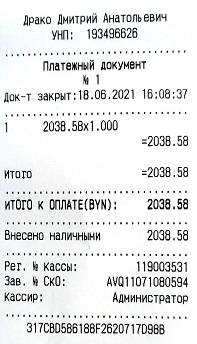 подтверждением оплаты является кассовый чек.